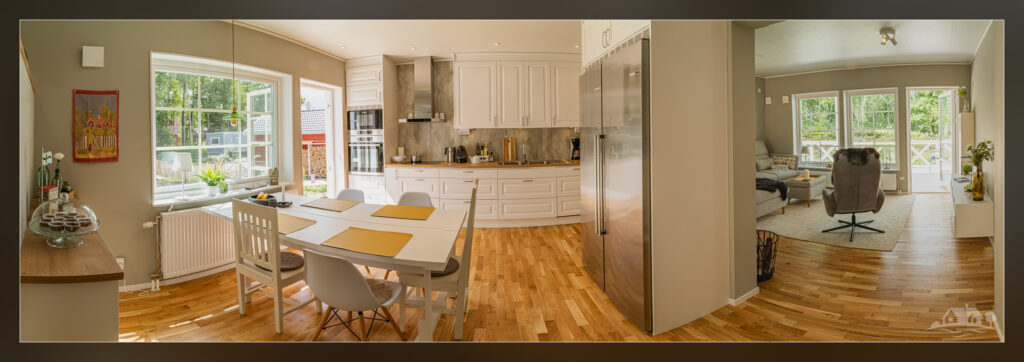 Das Haus wurde im März 2023 errichtet. Es ist ein Fertighaus in Holzbauweise von der Hausbaufirma SmålandsVillan. Eine große Garage gehört auch dazu. Bereits im Mai 2023 war alles fertig, die Endabnahme verlief problemlos und wir konnten über die Eingangsschwelle treten.