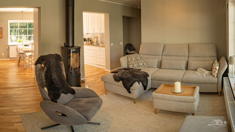Das Haus wurde im März 2023 errichtet. Es ist ein Fertighaus in Holzbauweise von der Hausbaufirma SmålandsVillan. Eine große Garage gehört auch dazu. Bereits im Mai 2023 war alles fertig, die Endabnahme verlief problemlos und wir konnten über die Eingangsschwelle treten.